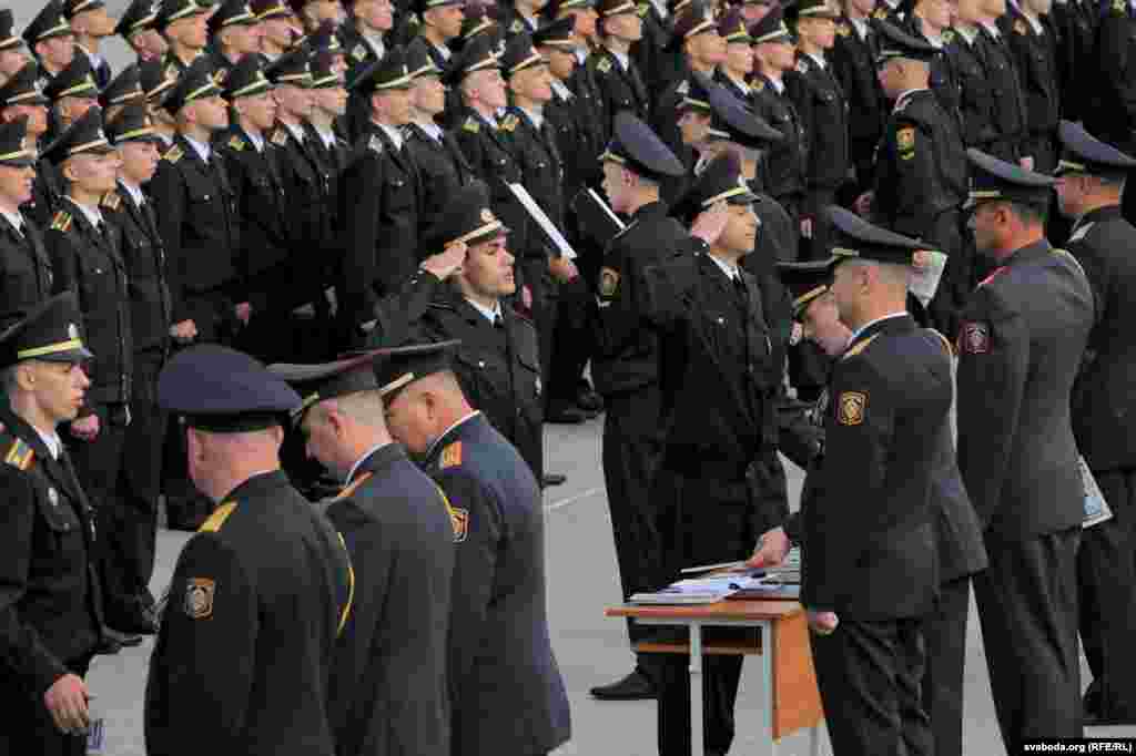Міністар унутраных спраў Ігар Шуневіч асабіста прымаў прысягу курсантаў адной з груп факультэта міліцыі.