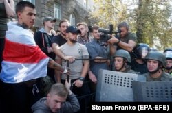 Днямі ў Кіеве перад Вярхоўнай Рады Ўкраіны адбылася акцыя з патрабаваньнем легалізаваць замежных добраахвотнікаў, якія ваявалі на баку Ўкраіны на Данбасе. Некалькі беларускіх добраахвотнікаў прыкавалі сябе кайданкамі да агароджы на вуліцы непадалёк ад адміністрацыі ўкраінскага прэзыдэнта.