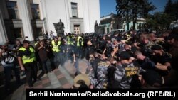 Старшыня Вярхоўнай Рады Ўкраіны Андрэй Парубій 20 верасьня, калі акцыя пратэсту ўсё яшчэ працягвалася, сустрэўся з дэлегацыяй замежных добраахвотнікаў і паабяцаў ім, што законапраект № 3433, які прадугледжвае спрошчаную працэдуру атрыманьня ўкраінскага грамадзянства для замежных вэтэранаў АТА (Антытэрарыстычная апэрацыя дзейнічала ў Данбасе да 30 красавіка сёлетняга году, цяпер - Апэрацыя аб'яднаных сіл УС Украіны — РС), унясуць як неадкладны ў парадак дня Рады 2 кастрычніка. У дзень галасаваньня па гэтым законапраекце «Нацыянальны корпус» плянуе правесьці чарговую акцыю пад Радай.