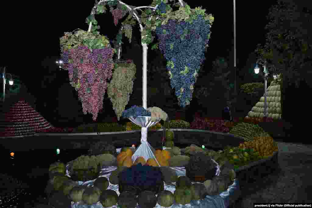 Тэрыторыю ўрадавай рэзыдэнцыі ўпрыгожылі інсталяцыямі з садавіны, якія вырошчваюць у Таджыкістане