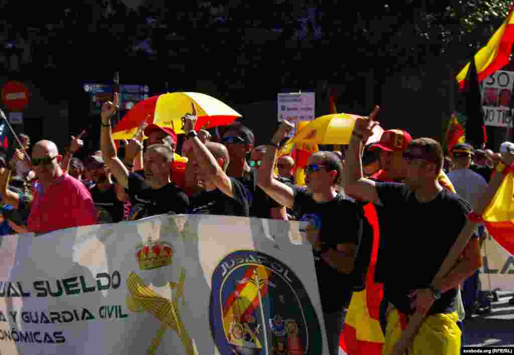 29 верасьня паліцыянты з усёй Гішпаніі наладзілі ў Барсэлёне маніфэстацыю з патрабаваньнем вышэйшых заробкаў і ў падтрымку дзеяньняў паліцыі на леташнім рэфэрэндуме аб незалежнасьці Каталёніі 1 кастрычніка 2017 году, які гішпанскі ўрад прызнаў незаконным. Тады нацыянальная паліцыя і цывільная гвардыя (сілавыя структуры цэнтральнай улады ў Мадрыдзе) ўжылі сілу, каб сарваць рэфэрэндум, і атакавалі шэраг выбарчых участкаў.