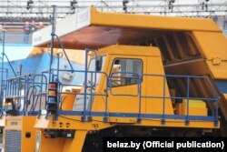 БелАЗ сьцьвярджае, што гатовы зрабіць бесьпілётным любую са сваіх машын. На ўрачыстасьцях паказалі бесьпілётныя 130-тонныя самазвалы трэцяга пакаленьня.