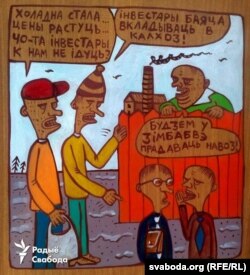 Саша і Сірожа, народныя героі мастака Аляксея Хацкевіча, ня самыя моцныя эканамісты, але таксама бачаць: «Інвэстары баяцца ўкладваць грошы ў калхоз».