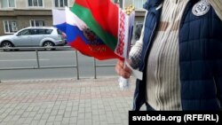 У цэнтры Магілёва група хлопцаў, дэманструючы, што яны глуханямыя, прапануюць мінакам купіць сьцяжкі і іншую атрыбутыку Расейскай Фэдэрацыі. Трымаюць і чырвона-зялёныя сьцяжкі, выбар якіх бяднейшы, чым расейскіх.