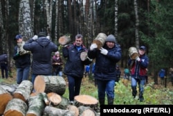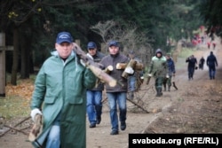 Як валянтэры на суботніку, ставяцца да Курапатаў? Аляксандар Харэвіч, настаўнік фізыкі з Лагойску кажа, што на суботнік іх ніхто не заганяў, а проста прапанавалі з раённага аддзелу народнай адукацыі ўзяць удзел у такой акцыі.