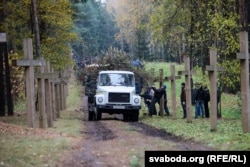 Абаронца Курапатаў Дзяніс Урбановіч кажа, што лесьнікі сьпілавалі адзін з трохмэтровых крыжоў на ўваходзе ва ўрочышча. Паводле Ўрбановіча, крыж ня быў пашкоджаны. Супрацоўнікі лясгасу сказалі, што крыж зламаўся, і запэўнілі, што яго адновяць і ўсталююць на тое ж месца.