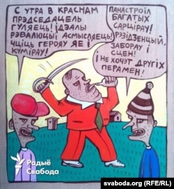 «Прэдседацель» настальгуе па «слаўных рэвалюцыйных дзяньках» — увесь у чырвоным гуляе, зялёныя балёнікі надзімае, шашкай контаррэвалюцыю пужае.