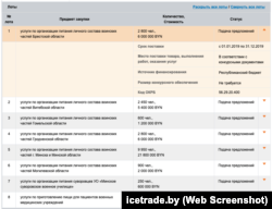 Міністэрства абароны Беларусі 1 лістапада абвясьціла тэндэр на арганізацыю харчаваньня асабістага складу вайсковых частак у 2019 годзе.