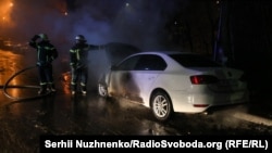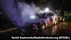 Карэспандэнт Свабода паведаміў пра ахоплены агнём аўтамабіль з дыпляматычнымі нумарамі амбасады Расеі, які стаяў непадалёк ад будынка дыпмісіі, у завулку Яраслава Хомава.