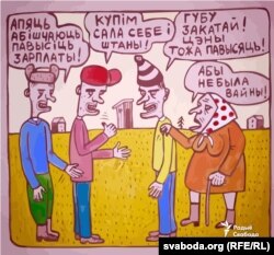 «Апяць абяшчаюць павысіць зарплаты, — радуецца просты люд. — Купім сала сабе і штаны».