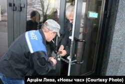 Дзьверы Міністэрства інфармацыі, 10 сьнежня. Тут і ніжэй фота: Арцём Лява, «Новы час»