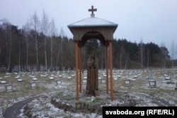 Апынуўшыся каля гэтага марцыбылінскага «касмадрому», я ня быў расчараваны, хоць і адчуў неверагодную маркоту. Гэта казённыя могілкі. Тут хаваюць памерлых зь недалёкага Дому састарэлых. Я нарэшце ўбачыў, як дзяржава ўяўляе ідэальныя могілкі. Роўная паляна бяз дрэваў. У цэнтры — драўляная скульптура Божай Маці, падобнай да манахіні ў смутку.