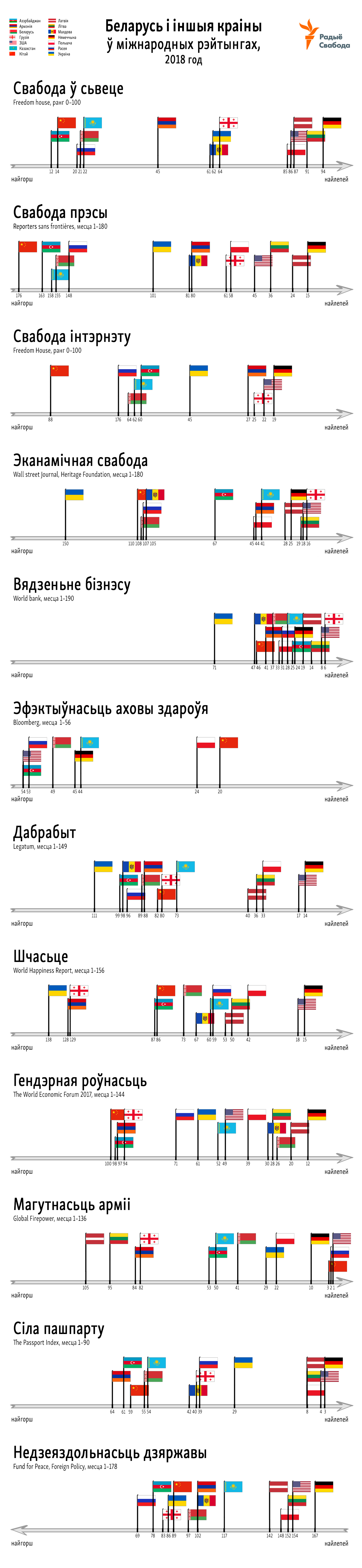 Свабода сабрала ў адну карцінку 12 міжнародных рэйтынгаў, апублікаваных сёлета:
