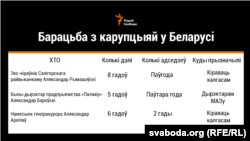 • даваньне хабару — пазбаўленьнем волі да 10 гадоў.