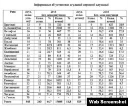 У лісьце прыводзяцца зьвесткі пра стан беларускамоўнай адукацыі, сабраныя абласным інстытутам разьвіцьця адукацыі.