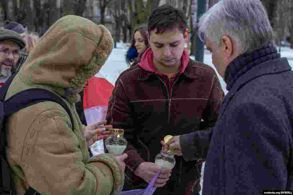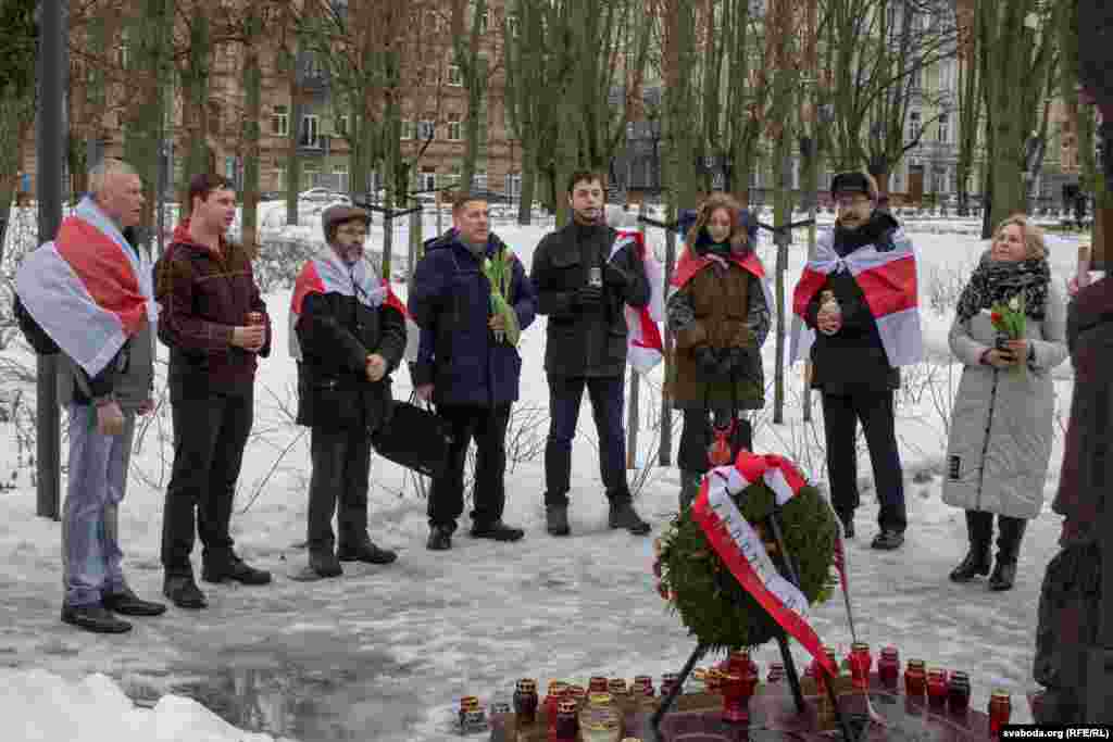 Актывісты Руху салідарнасьці «Разам» 2 лютага ўшанавалі памяць Кастуся Каліноўскага на пляцы Лукішкі ў Вільні. Сабраліся каля дзясятка чалавек, у тым ліку сустаршыні руху Вячаслаў Сіўчык і Алена Талстая.