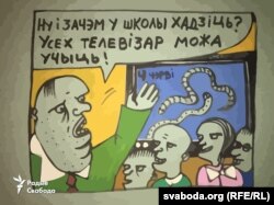 «Ня нада так многа ў школу хадзіць, усіх тэлевізар можа вучыць», — прасоўвае «прэдседацель» ідэю школазамяшчэньня.