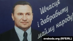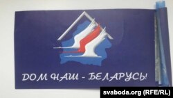 У мяне захаваўся сіні сьцяжок з таго зьезду. З аднаго боку — словы «Шчасьця і дабрабыту майму народу!» і партрэт кандыдата. З другога — удала абыгранае прозьвішча: «Дом наш — Беларусь!».