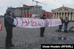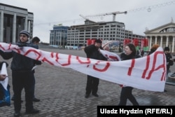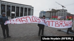 На Кастрычніцкую плошчу ў Менску выйшлі 10 чалавек у падтрымку беларускіх палітвязьняў. Акцыя цягнулася каля 25 хвілін.