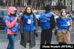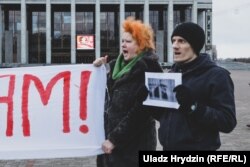 Перад акцыяй на выхадзе з дому затрымалі ініцыятара акцыі Паўла Севярынца, а таксама Зьмітра Паліенку і Насту Гусеву.