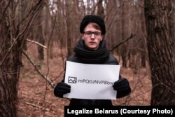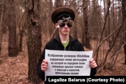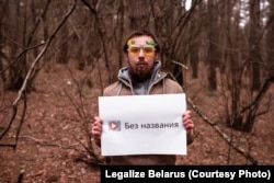Актывісты кампаніі «Legalize Belarus» правялі пікет з цытатамі са сьпісу экстрэмісцкіх матэрыялаў, 14 сакавіка, недзе ў лесе