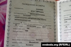 Аднак дакумэнтаў, якія б пацьвярджалі высновы экспэртызы, жанчына не атрымала. Быхаўскі аддзел ЗАГС выдаў пасьведчаньне аб сьмерці, дзе ў графе «прычына сьмерці» упісаны код R99, то бок прычына ня вызначаная.