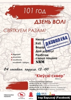 24 сакавіка пройдзе мітынг-канцэрт да Дня Волі ў Менску ў Кіеўскім сквэры. Яго ладзяць Правацэнтрысцкая кааліцыя і БСПД (Грамада). Анансавалі выступы гуртоў «Дай дарогу» (другі раз), N.R.M., «Разьбітае сэрца пацана» і іншых.