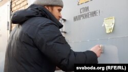 Андрэй Корпс кажа, што зьвярнуў увагу на надпісы, зробленыя пад трафарэт, пару месяцаў таму.