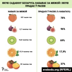 Рассельгаснагляд хоча «разгледзець транзыт садавіны з іншых краін празь Беларусь у Расею». Праблема ў тым, што праз тэрыторыю Беларусі туды трапляюць «санкцыйныя» прадукты з Эўропы. Свабода паглядзела, якую садавіну і дзе мы набываем і што прадаём у Расею.