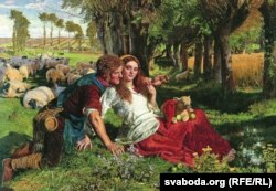 Несумненная клясыка, так сказаць, першы подых эротыкі ў пасьляваеннай беларускай літаратуры. Усяго толькі подых, бо тое, што насамрэч дыхала эротыкай, схавалася ў салому. Ілюстрацыя: Уільям Холман Хант «Наёмны пастух» (1851).