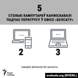 Падчас ператрусу, паводле Дзябёлы, забралі два сыстэмныя блёкі, тры ноўтбукі, а таксама ўсе носьбіты інфармацыі.
