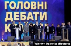 На Нацыянальным спартовым комплексе «Алімпійскі» адбыліся дэбаты між двума кандыдатамі на прэзыдэнта Ўкраіны — Пятром Парашэнкам і Ўладзімірам Зяленскім.