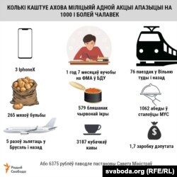 Апазыцыя адмовілася ад шэсьця «Чарнобыльскі шлях» у Менску, бо міліцыя запатрабавала за паслугі аховы акцыі 6375 рублёў. Столькі каштуе ахова адной акцыі з удзелам тысячы і больш чалавек. Глядзім, што можна было б набыць за гэтыя грошы.