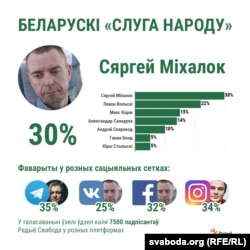 Чытачы Свабоды выбралі беларускага «Слугу народу» сярод васьмі кандыдатаў — папулярных у Беларусі асобаў шоў-бізнэсу. Ім стаў музыка Сяргей Міхалок, які набраў 30% галасоў.