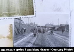«У 1944 годзе Менск меў жахлівы выгляд, большасьць дамоў стаялі бяз дахаў», — падсумоўвае Ігар Мельнікаў.