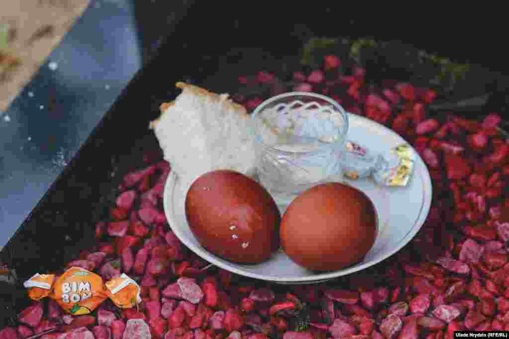Раней вешалі ручнікі. Зараз крыжы зьніклі, на помніку не трымаюцца, таму ручнікі таксама амаль зьніклі з магілаў.