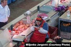 Крамы ў двух гандлёвых колах побач зь мясцовымі беларускімі прапануюць тавары з Расеі, Польшчы, краінаў Балтыі, а таксама з былых паўднёвасавецкіх рэспублік. Ёсьць тут і сухафрукты з Азэрбайджану і Ірану, дзясятак відаў курагі, раскладзеных на стэндзе, каму якая падабаецца. Сьвежая і сушаная рыба з паўночных мораў, ікра ў малых і вялікіх слоіках... А на вельмі акуратных зашклёных прылаўках, якая цягнуцца бясконца ўглыб залі, пераважна сьвежае мяса і велізарная колькасьць сырога сала. Тут сала ядуць у сырым выглядзе, можа зьлёгку тэрмічна апрацаванае. Сухога мяса і каўбасаў амаль што й няма. Калі й знойдзецца, то напэўна не зь Беларусі. Гэта бясконца роўная, лясістая, вільготная і балоцістая краіна. Тут няма дзе сушыць вяндліну.