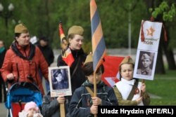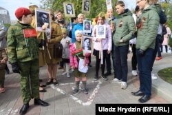 Я стаў прэзыдэнтам, першая мая была акцыя, і мяне вэтэраны паклікалі ісьці ад унівэрмагу, па-мойму, мы ішлі ад ГУМа да Плошчы Перамогі і ўскладалі заўсёды вянкі. Хто з партрэтамі, хто яшчэ з чымсьці. Чаму мы павінны кінуць сваё „Беларусь памятае“ і схапіцца за „Несьмяротны полк“? Калі па сваёй сутнасьці і нават па зьнешняй форме яны падобныя, яны аднолькавыя».