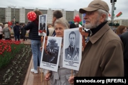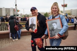 Праўда, калёна з партрэтамі удзельнікаў мінулай вайны, партрэтамі Сталіна і «георгіеўскімі стужкамі» прайшла ўсяго 150 мэтраў — ад прыступак на плошчы Перамогі да Вечнага агню.