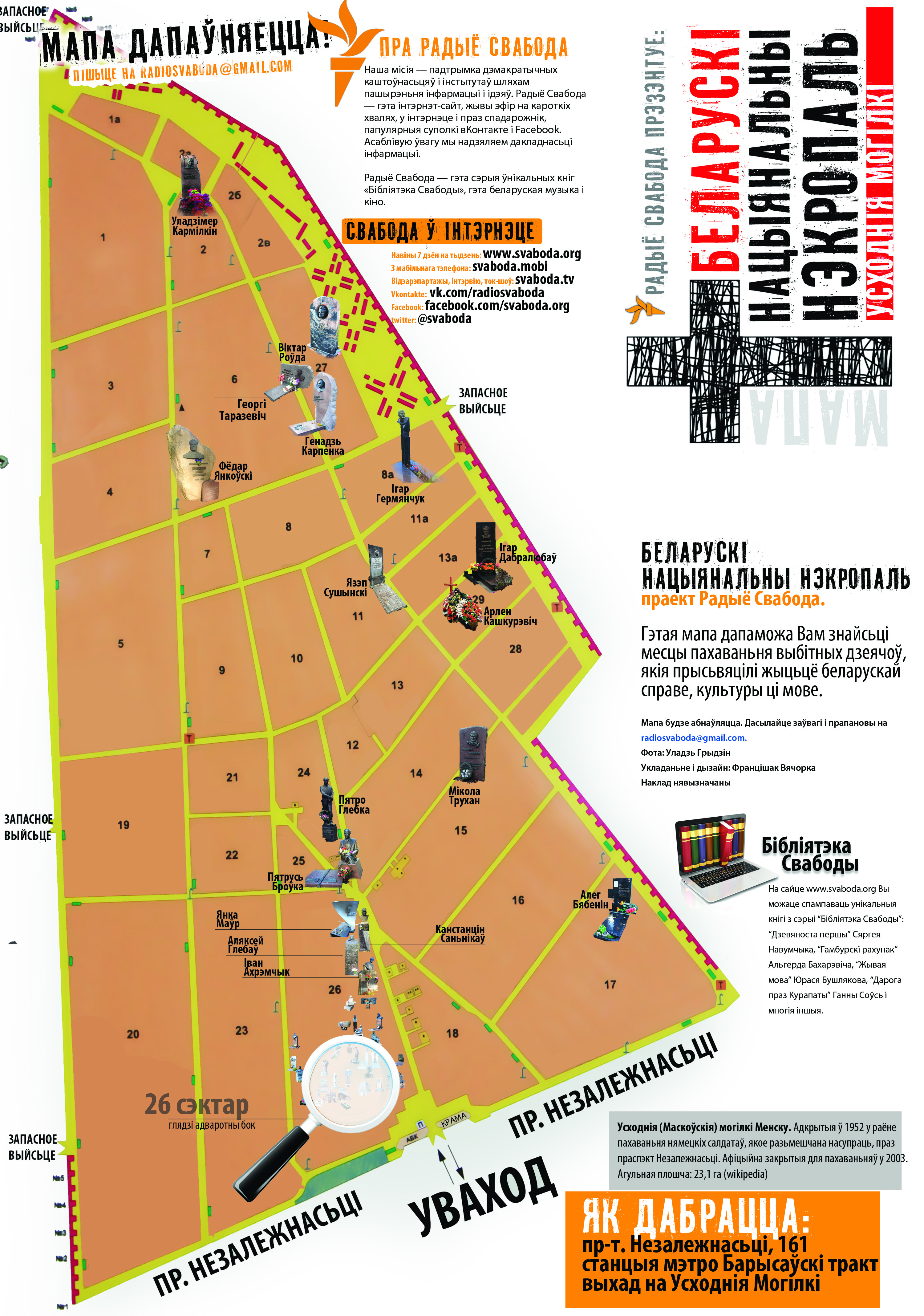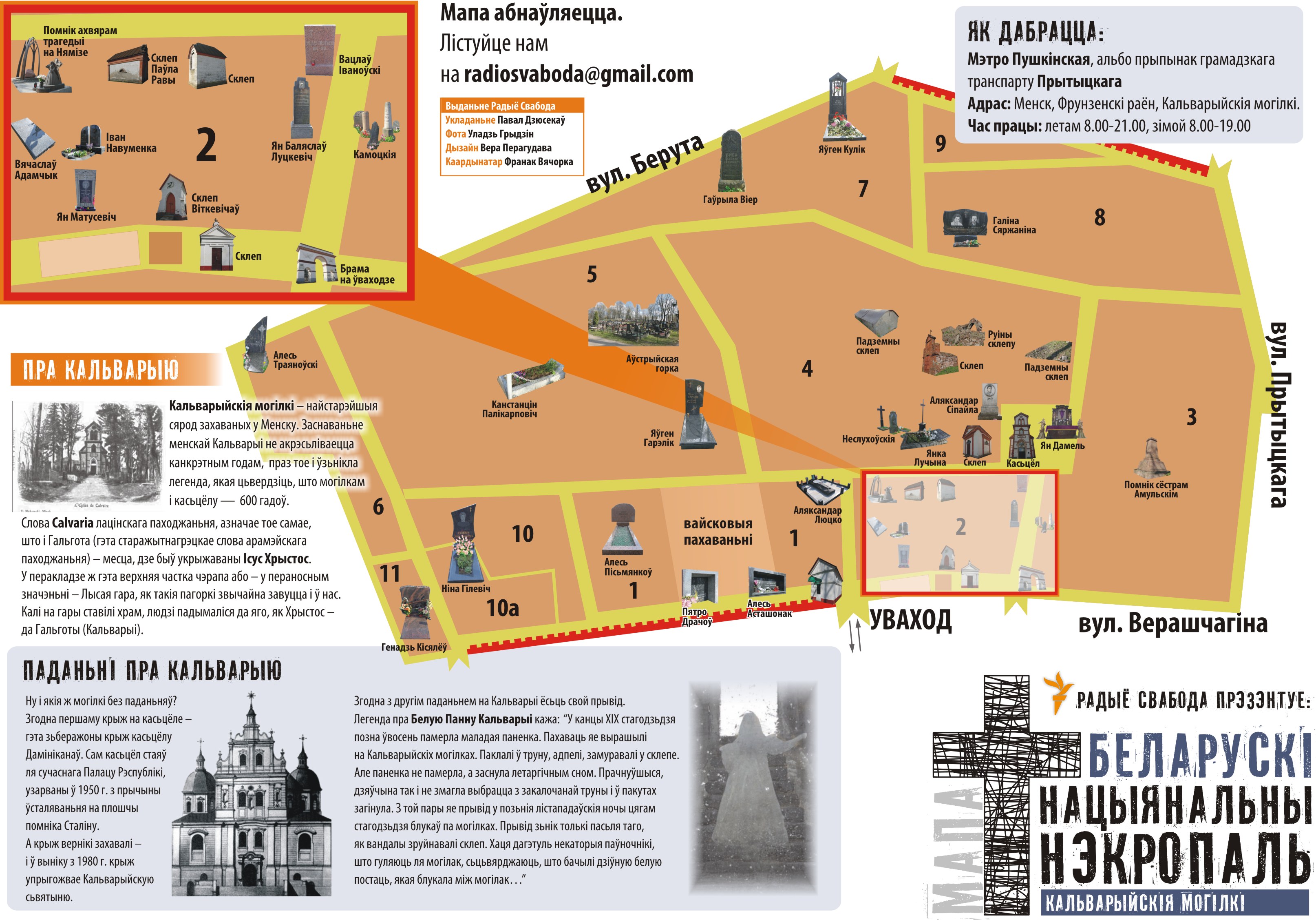 Радыё Свабода падрыхтавала мапы Вайсковых, Кальварыйскіх і Ўсходніх могілак з пазначэньнем месцаў пахаваньня беларусаў, якія прысьвяцілі жыцьцё беларускай справе, культуры і беларускай мове.​