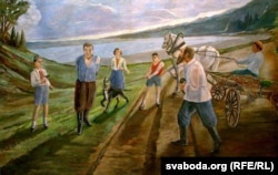 «Але такое становішча тут не палохала, людзям на востраве яно здавалася зусім звычайным», — піша Мележ пра жыцьцё пасярод балота. Як паўстагодзьдзя таму, так і цяпер гэтыя словы заключаюць у сабе стоадсоткавую беларускую рацыю. Ілюстрацыя: Джон Констэбл «Калёсы для сена» (1821).