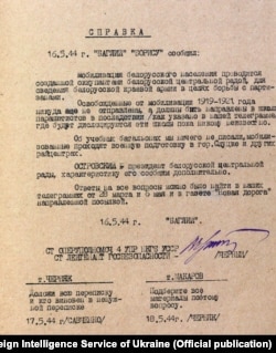 У траўні 1944 году народны камісар дзяржбясьпекі УССР Саўчанка накіраваў у Маскву паведамленьне аб дзейнасьці Беларускай цэнтральнай рады.