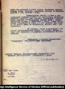 Але замест падзякі за зробленую працу намесьнік кіраўніка 4-га ўпраўленьня НКВД СССР, начальнік Асобай групы пры народным камісары ўнутраных спраў Берыі Навум Эйцінгон (выхадзец зь Беларусі, савецкі выведнік, якога зьвязваюць з арганізацыяй забойства Льва Троцкага і вывазам гішпанскага дзяржаўнага золата ў СССР. — РС) пачаў катэгарычна патрабаваць тлумачэньня, чаму НКВД Украіны займаецца гэтай справай.