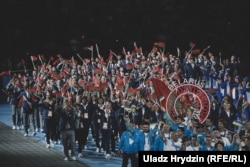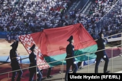 А вось кіраўнік Беларусі, адкрываючы гульні, выступаў па-расейску. Лукашэнка назваў спаборніцтвы самымі значнымі ў гісторыі краіны і пажадаў спартоўцам посьпеху.