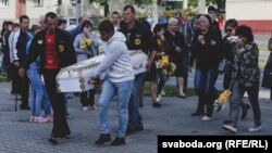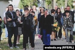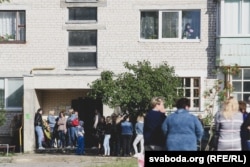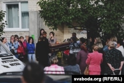 Яшчэ з двума дзецьмі, 9-гадовым хлопчыкам і 4-гадовай дзяўчынкай, разьвітваліся дома, на вуліцы Леніна. Туды прыйшлі некалькі соцень чалавек.