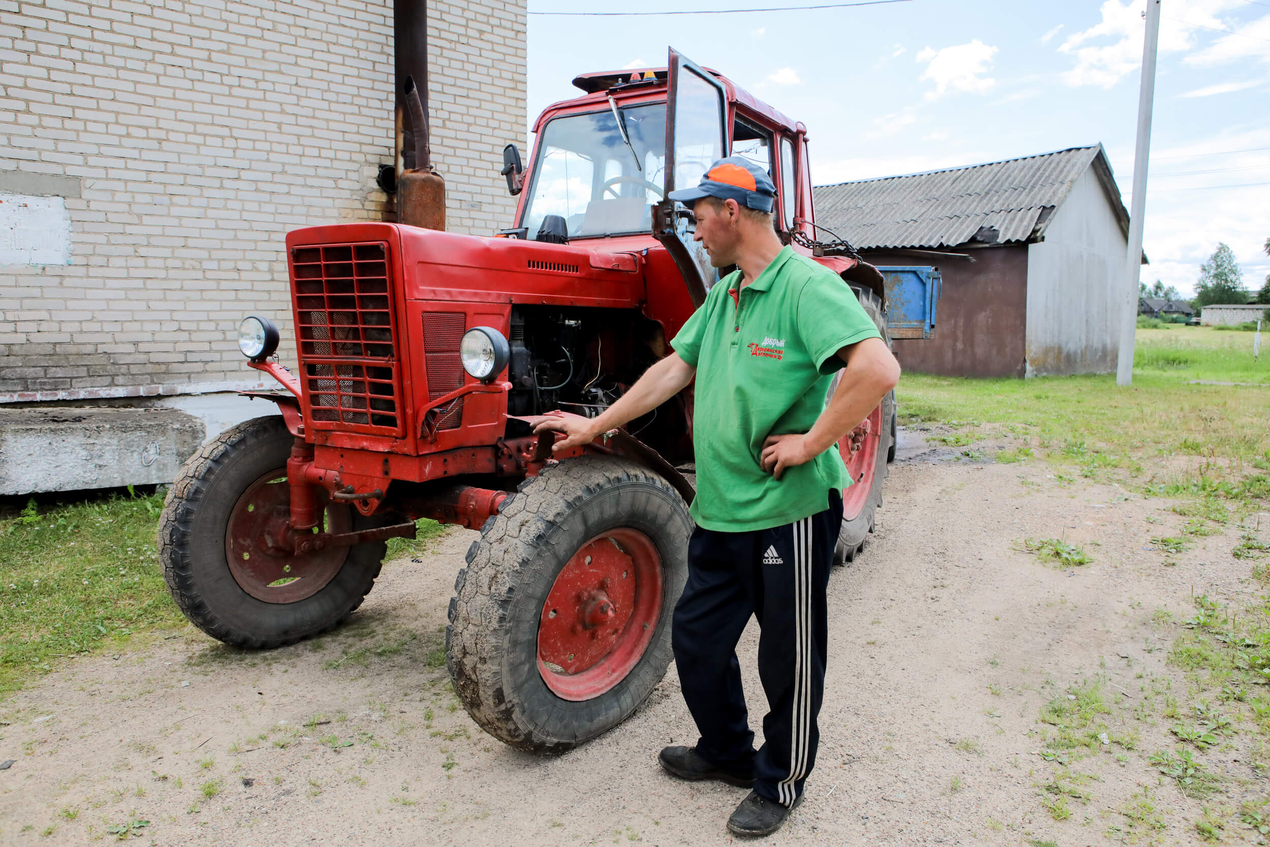 Міхаіл зь вёскі Ходцы па мянушцы «губэрнатар», працуе на трактары: