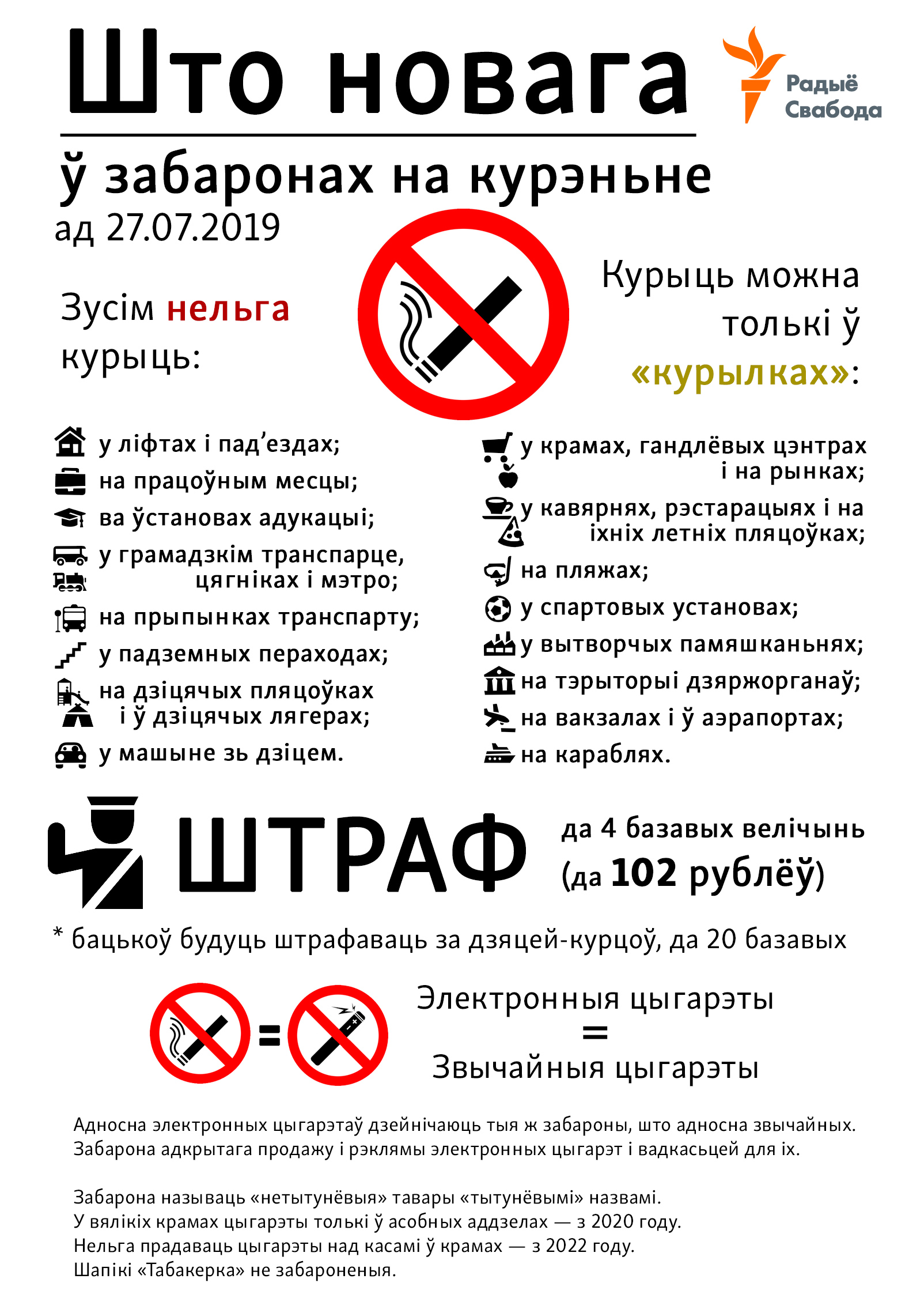Ад 27 ліпеня ў Беларусі набылі моц новыя правілы і забароны адносна курэньня. Каротка расказваем, што зьмянілася.