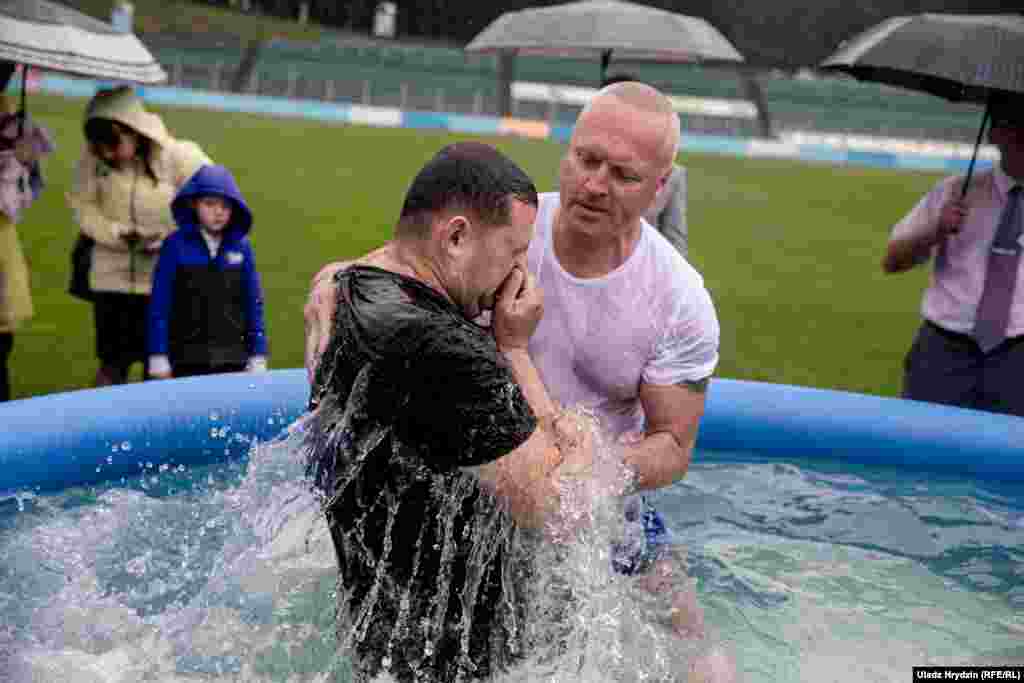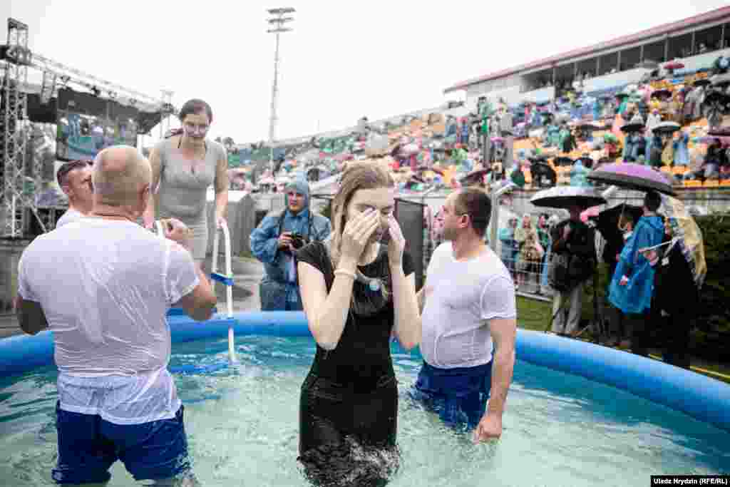 У суботу на стадыёне «Трактар» адбылося хрышчэньне новых сьведкаў Яговы.
