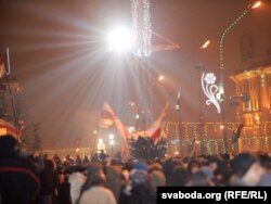 Кастрычніцкая плошча, дзе ўвечары пачалі зьбірацца пратэстоўцы і куды прыйшлі 8 незалежных кандыдатаў (усе, акрамя Някляева), аказалася занятая коўзанкай. У выніку натоўп рушыў да плошчы Незалежнасьці і Дому ўраду.