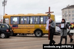 Вучні разьвітваюцца з загінулай настаўніцай Марынай Пархімовіч, 13 лютага 2019 году